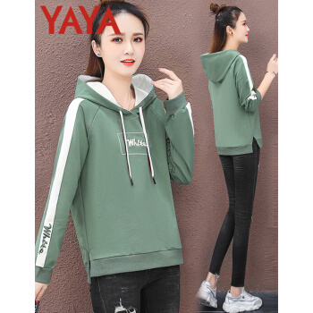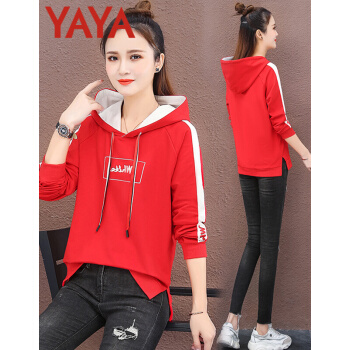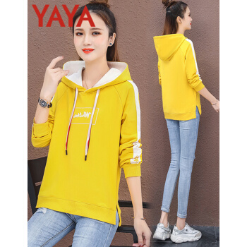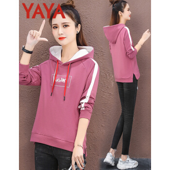 鸭鸭服饰yaya卫衣女2020秋装女装新款宽松外套女长袖运动棒球服上衣女短外套女 紫粉色 L |