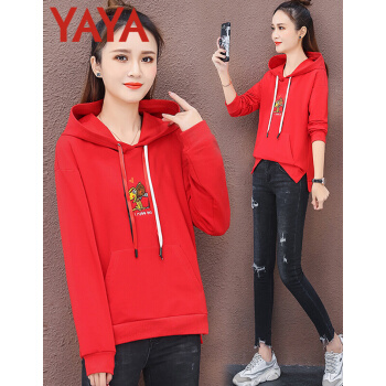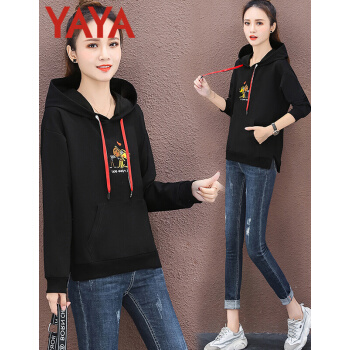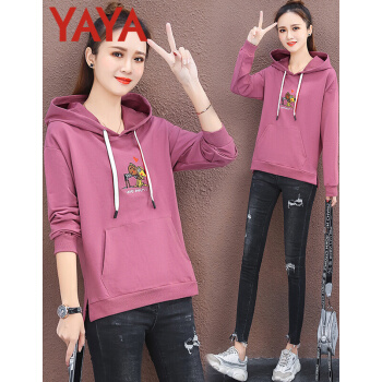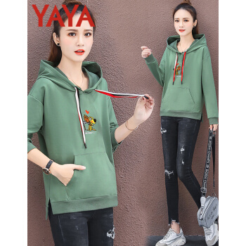 鸭鸭服饰yaya卫衣女2020韩版女装薄款长袖外套女上衣新款韩版宽松连帽衫秋装时 绿色 L |