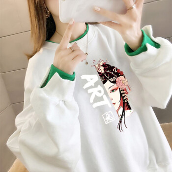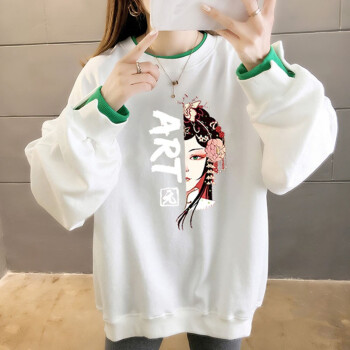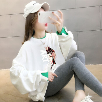 北极绒卫衣女2020春秋季新品休闲百搭宽松长袖卫衣女复古印花假两件上衣ins潮上衣女2535 白色 请拍正确尺码 |