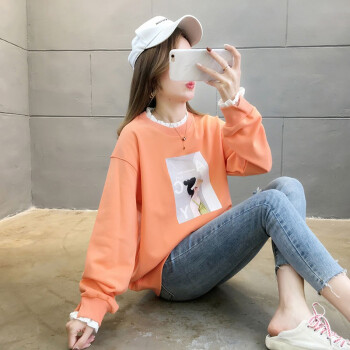 卡赫希卫衣女2020春秋季新款休闲百搭假两件卫衣女长袖宽松韩版潮流薄款ins潮上衣女5001 桔色 请拍正确尺码 |