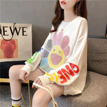 卡赫希卫衣女2020春秋季新款潮流时尚韩版宽松显瘦慵懒风卫衣女ins超火学生长袖上衣女2322 白色 请拍正确尺码 |