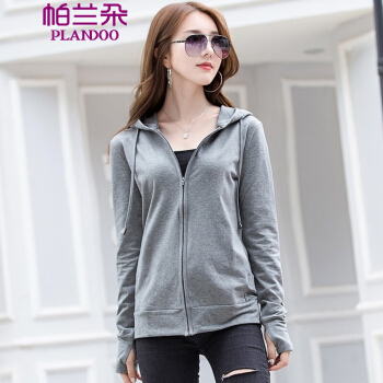 帕兰朵 卫衣女2020秋季新品连帽拉链卫衣女修身显瘦时尚小外套上衣外搭 灰色 请拍正确尺码 |