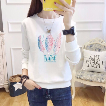 泛哥卫衣女2020秋冬季新款套装韩版宽松学生长袖T恤打底衫显瘦大码女装外套潮闺蜜装班服定制 白色花藤春秋款 M(建议95-110斤) |