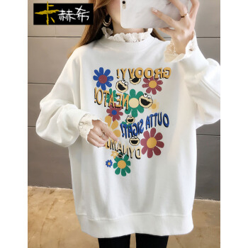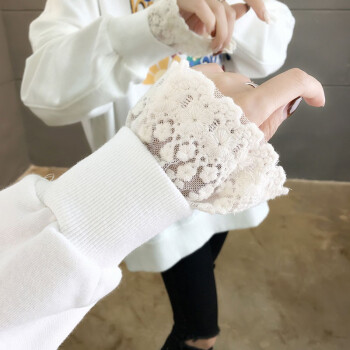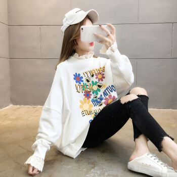 卡赫希卫衣女2020春秋季新款时尚休闲宽松韩版潮ins春秋装蕾丝百搭薄款假两件上衣女5002 白色 请拍正确尺码 |