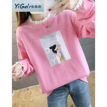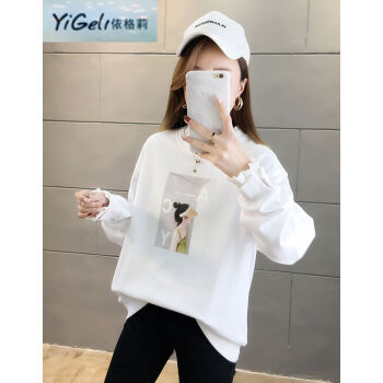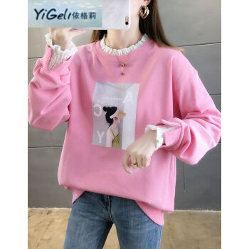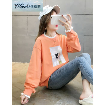 依格莉中学生少女秋天流行宽松卫衣女2020新款韩版高中初中生ins印花字母拼色大码圆领薄款长袖卫衣女 橙色 M |