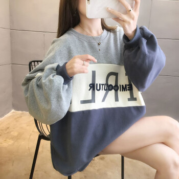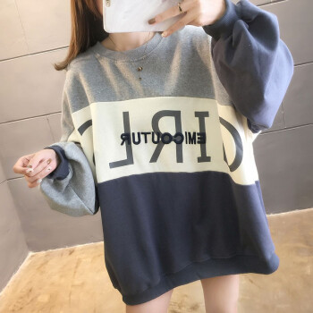 卡赫希卫衣女2020春秋季新款慵懒风百搭休闲学生上衣女时尚宽松圆领长袖拼接中长款女卫衣5006 灰色 请拍正确尺码 |