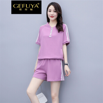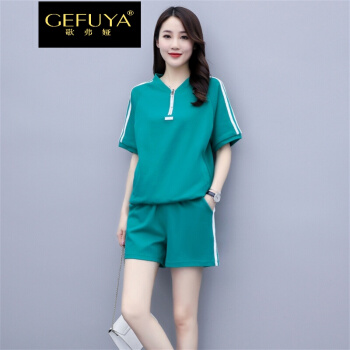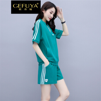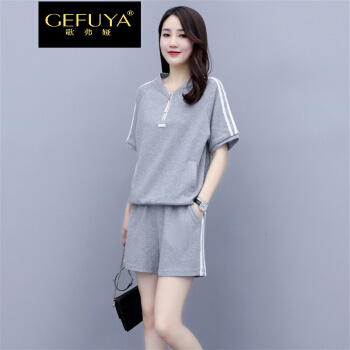 歌弗娅品牌 休闲运动套装女夏款新2020欧洲站晨跑锻炼时尚短袖短裤卫衣两件套 灰色 M |