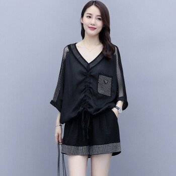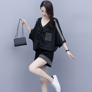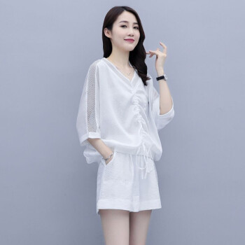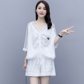 卿依瑟 卫衣短裤套装女2020夏季新款镂空拼接V领时尚卫衣上衣大码宽松时尚休闲百搭套装短裤俩件套女装 白色 M |