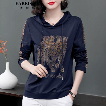 FABEISHA品牌卫衣女长袖2020秋季新款中年大码宽松休闲连帽上衣 白色 M |
