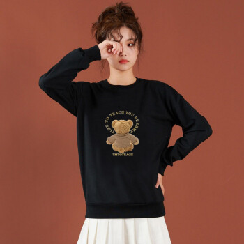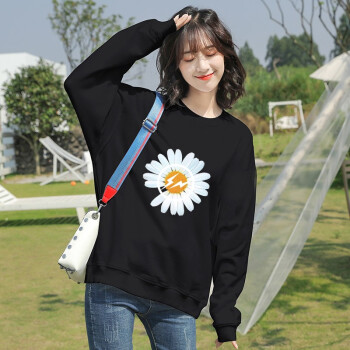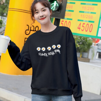 萌朵丽啦2020新款卫衣女宽松秋冬学生长袖圆领外套班服定制 MT3264黑色 M(建议90斤-110斤) |