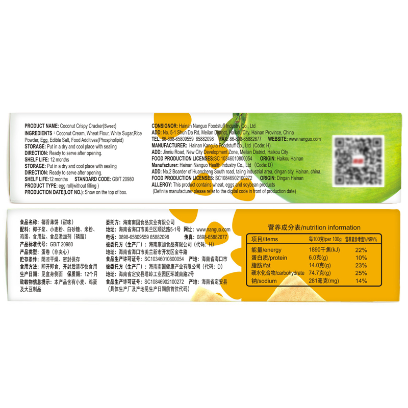 椰香薄饼椰香甜味 |