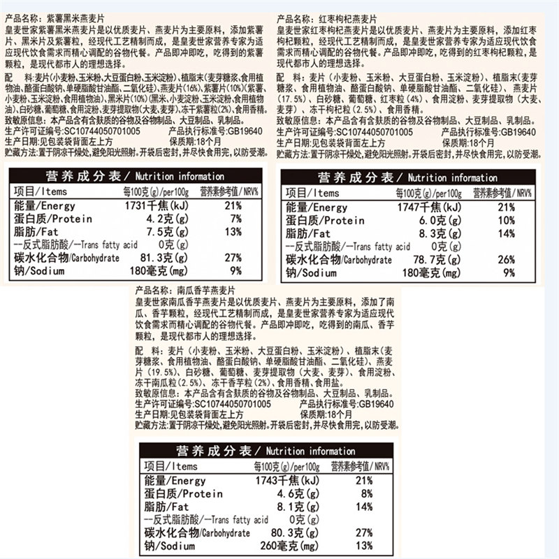红枣枸杞&紫薯黑米&南瓜香芋燕麦片组合装 |