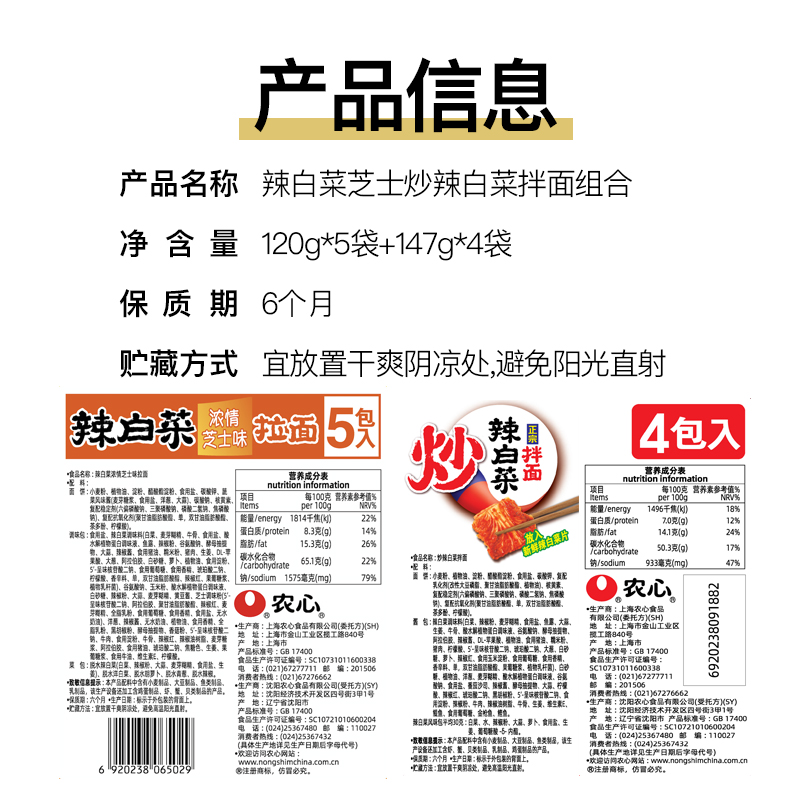 农心炒辣白菜拌面(内含韩国切片泡菜)&农心辣白菜芝士辛拉面方便面组合装 |