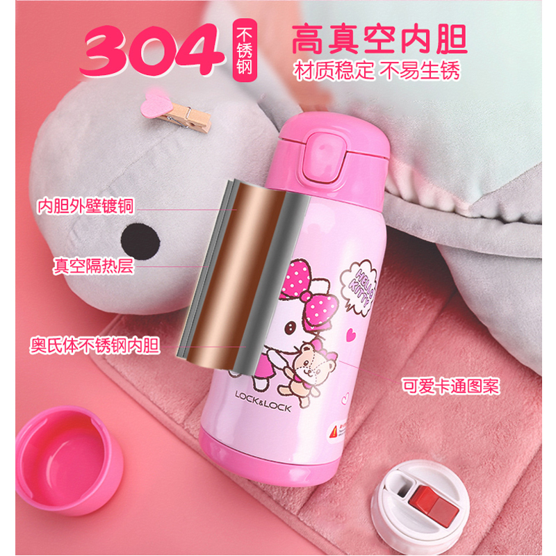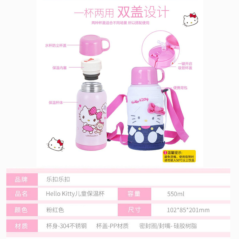 乐扣乐扣双杯盖吸管儿童保温杯 550ml【不锈钢/粉红色】 |