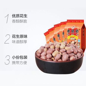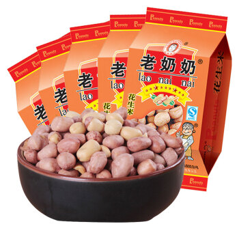老奶奶 休闲零食每日坚果炒货 地方特产下酒小吃 带皮五香味花生米122g*5/袋 |