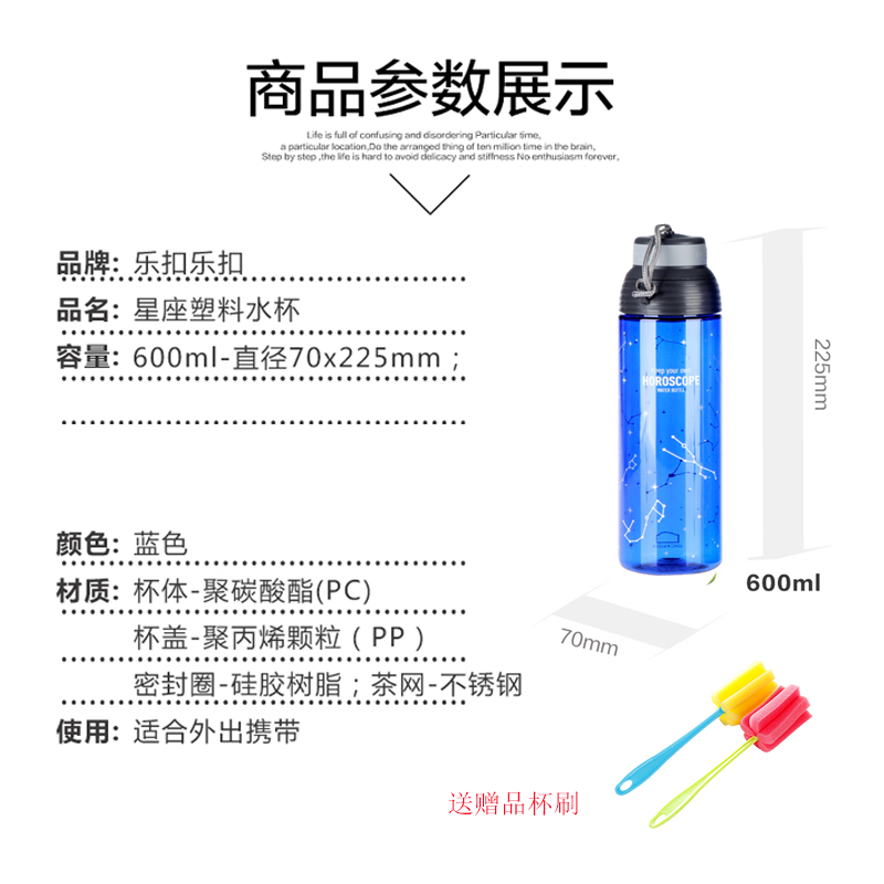 星座系列600ml便携防漏塑料运动水杯 买就送杯刷【塑料/蓝色】 |