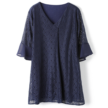 红粉宣言2020夏季新款百搭宽松收腰短袖雪纺上女圆领显瘦上衣 藏青色 2XL |