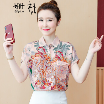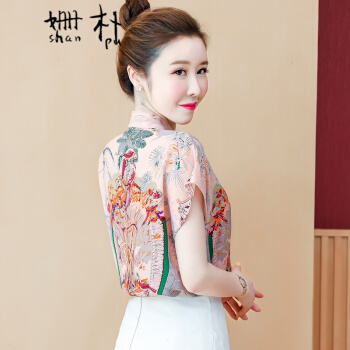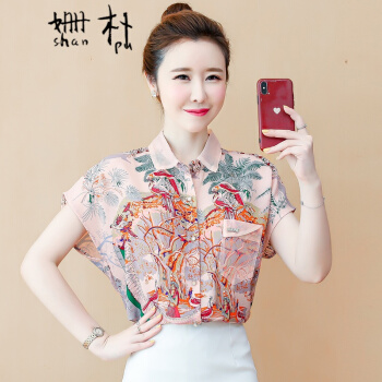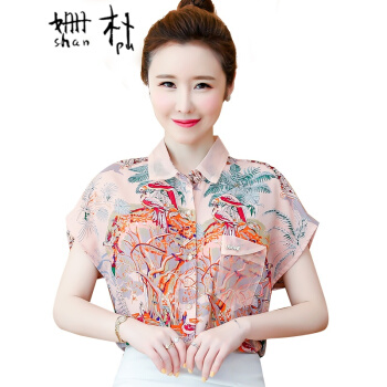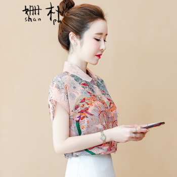 姗朴 雪纺衫女2020韩版夏季新款大码女装洋气碎花上衣宽松显瘦设计感小众时尚潮上衣休闲百搭小衫女衬衫 粉色 L |