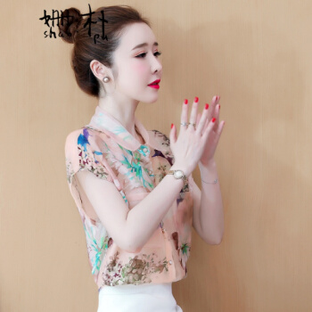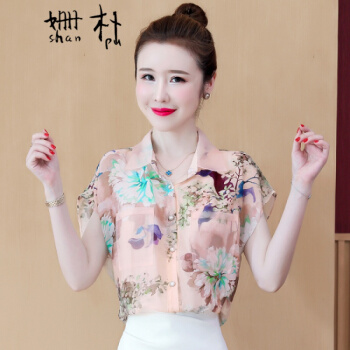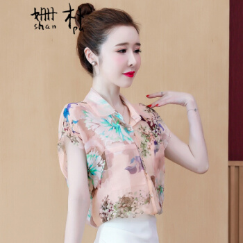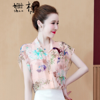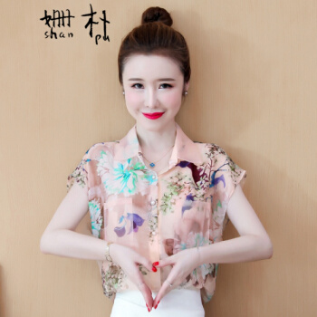 姗朴 雪纺衫女2020夏季新款大码女装港味立体花朵印花雪纺洋气上衣宽松显瘦小衫短袖休闲时尚仙气衬衫女 图片色 L【建议105-115斤】 |