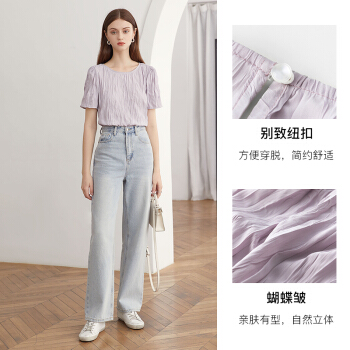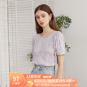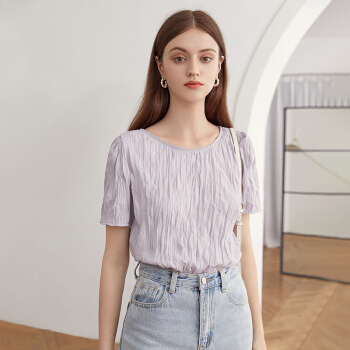 范思蓝恩 2020夏季新款紫色褶皱雪纺衫女百搭小众设计感温柔风上衣 淡紫雾色 M |