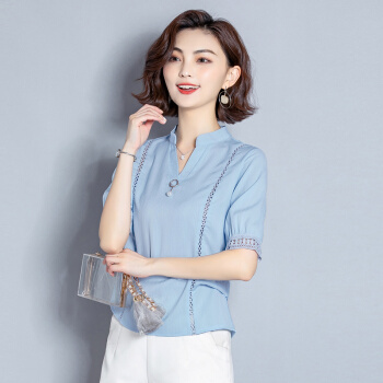 星芭漫 雪纺衫短袖女2020夏季新款百搭小衫女#510 黄色 L |