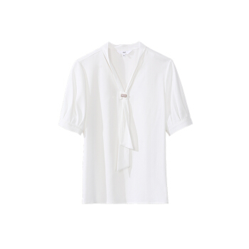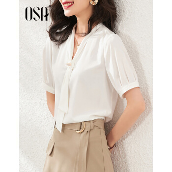 OSA欧莎白色雪纺衫女时尚夏装2020新款v领洋气小衫时尚遮肚子短袖上衣 白色 S |