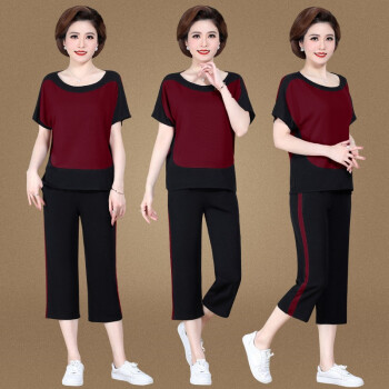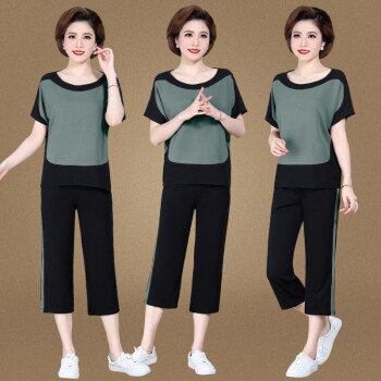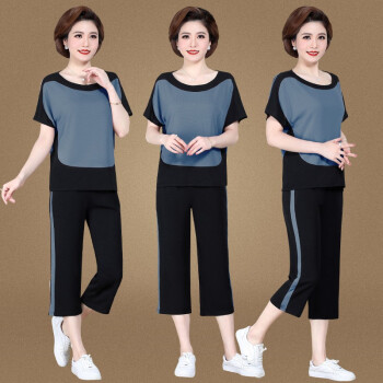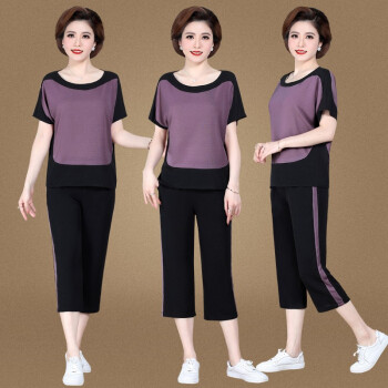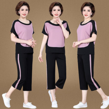 银研雪中老年女装夏装妈妈装运动休闲套装女洋气上衣服中年女短袖t恤2020新款中老年两件套 浅粉 (请拍对应尺码) |