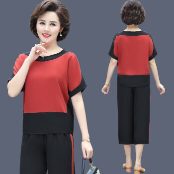 涂蝶幽 妈妈夏装运动服套装两件套2020新款洋气减龄中老年女装人短袖上衣服女 红色 2XL (105-115斤) |