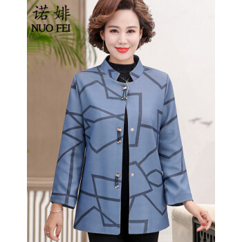 诺婔新款中年妈妈装春秋装洋气外套高贵上衣中老年女装春装气质大码休闲薄风衣短奶奶大码衣服夹克40岁60 湖蓝色 XL 建议90-115斤 |