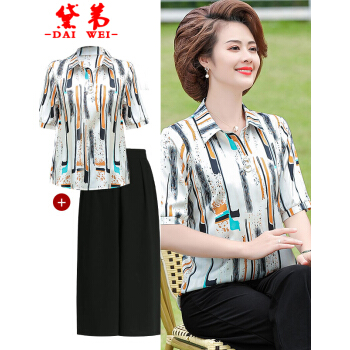 黛苇中老年女装妈妈装夏装洋气套装2020新款女上衣雪纺衫女短袖t恤中年小衫两件套休闲套装大码女装 卡其色(阔腿裤) XL(90-110斤) |