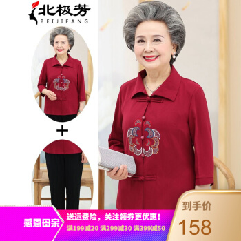 北极芳 中老年女装妈妈装奶奶装2020新款套装春夏装中长袖老年人休闲衬衫女60-80婆婆衬衣 037 红色套装 2XL【105-120斤】 |