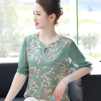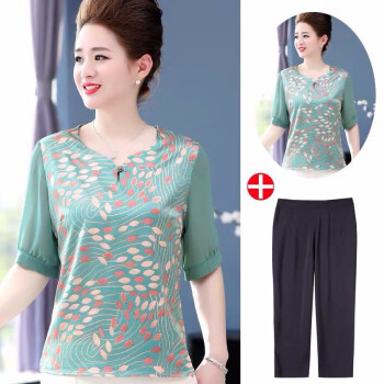 南极人 妈妈装套装2020夏季新款洋气雪纺小衫50岁中老年短袖女士上衣大码两件套 N3-NRA76-9246-套装皮粉 XL 建议95-110斤穿 |