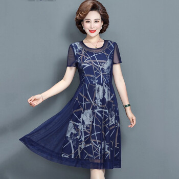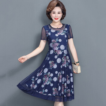 昱樱中老年女装连衣裙2020新款夏装碎花裙4050岁妇女阔太太过膝大码宽松中年女装薄款高贵妈妈装裙子 1号色 此码勿拍.请拍自身对应码数 |