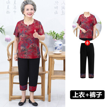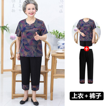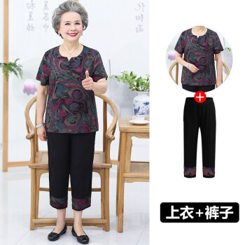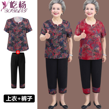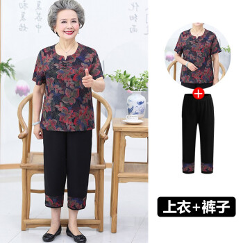 屹杨套装中老年女装妈妈装大码女装2020新款中老年人夏装女奶奶短袖套装60岁70妈妈T恤上衣老人衣服 1号色 (尺码勿拍,请拍自身对应尺码) |