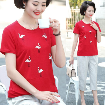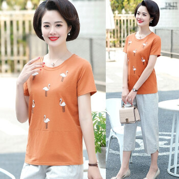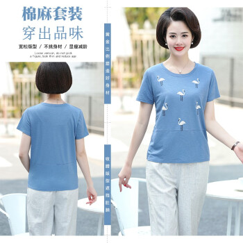 昱樱中老年女装短袖t恤套装2020夏装新款4050岁中年女装上衣裤子妇女休闲宽松大码衣服妈妈两件套 蓝色+棉麻裤 此码勿拍.请拍自身对应码数 |