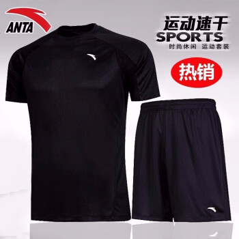 【两件套】安踏运动套装男2020年夏季短袖篮球跑步健身训练足球速干薄款运动服饰短裤 -4基础黑 L/175 |