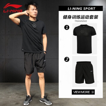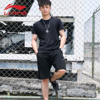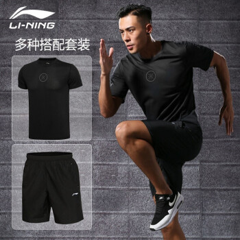 李宁运动套装男士速干短裤男2020夏季服饰健身服篮球服运动服饰跑步服衣服透气短袖 黑/黑(韦德) XL |