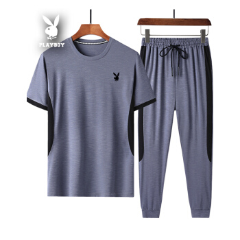 短袖t恤男纯色运动2套装棉2020棉夏季新款韩版宽松翻领潮流T恤衫大码休闲衣服男装九分裤 黑色422 XL |