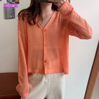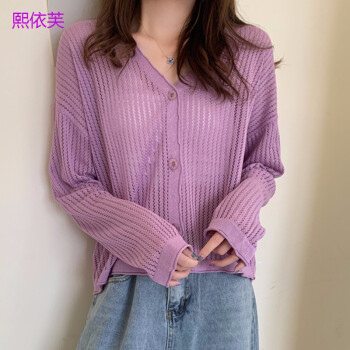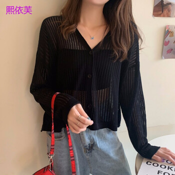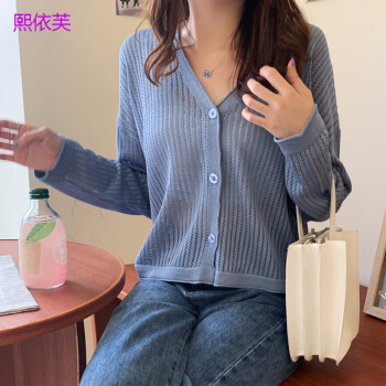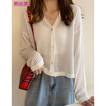 熙依芙针织衫女开衫夏季2020新款韩版网红短款v领针织衫女薄款镂空洋气防晒开衫外套 白色 均码(80-135斤可穿) |