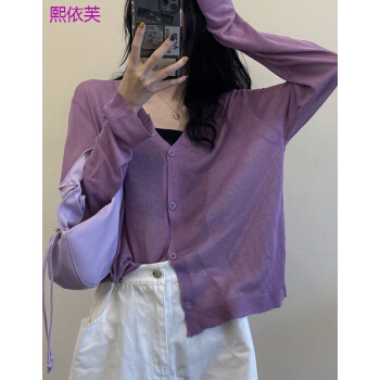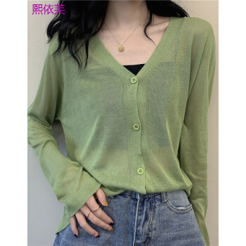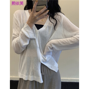 熙依芙针织衫女夏季2020新款小香风v领薄款冰丝bm针织开衫外搭长袖防晒衫上衣女 白色 均码 |