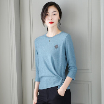 素荨针织衫女短款亮丝打底衫2020秋装宽松上衣七分袖薄款毛衣 蓝色1208 M |