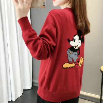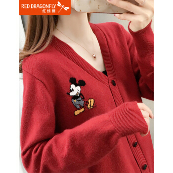 红蜻蜓 2020年新款秋季女装米奇很仙的女士毛衣宽松百搭外穿慵懒针织衫女开衫外套 WL733-2 红色 均码 |