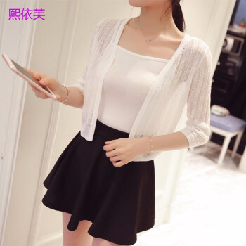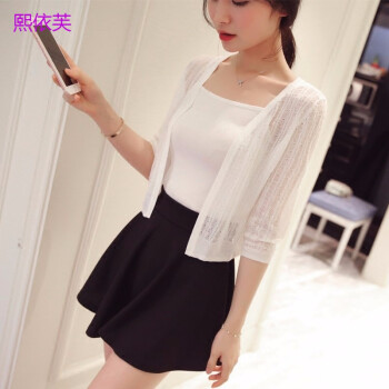 熙依芙针织衫女开衫夏季薄款吊带外搭开衫超仙短款针织衫女镂空冰丝小外套防晒衣披肩 白色 M |