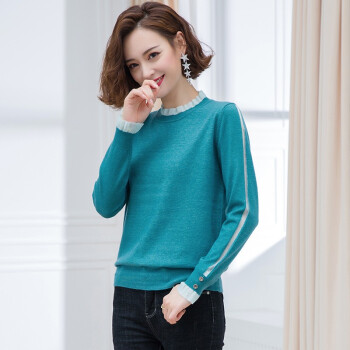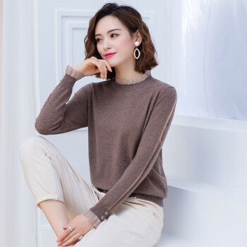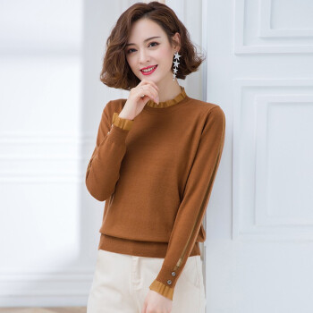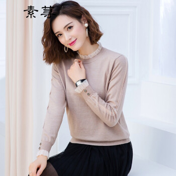 素荨针织衫女短款秋装2020年新款薄款毛衣宽松长袖打底衫蕾丝上衣 浅杏0856 M |