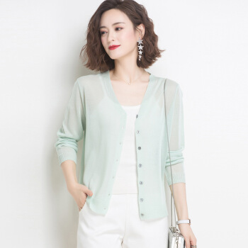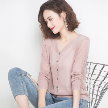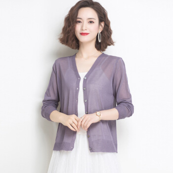 歌米拉 冰丝针织衫女开衫短款小外套2020夏季新款洋气薄防晒衫女士长袖外搭 驼色 M |