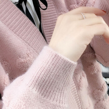 恒源祥针织衫女2020秋季新品韩版ing潮慵懒风宽松显瘦开衫针织衫女百搭很仙的女外套1487 粉色 M |
