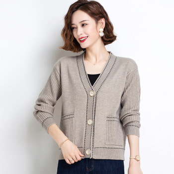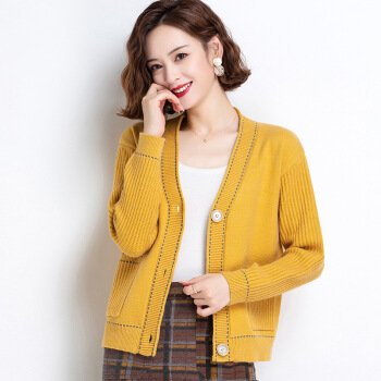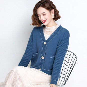 歌米拉 针织衫女开衫2020秋季新款毛衣女外套时尚韩版春秋女装长袖短款 蓝色 M |