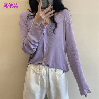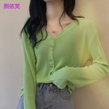熙依芙针织衫女开衫春夏季2020新款网红V领bm针织长袖防晒开衫冰丝薄款外搭上衣女潮 蓝色 均码 |
