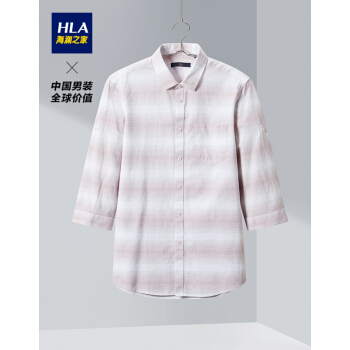 HLA海澜之家条纹中袖休闲衬衫2020夏季新品舒适棉麻衬衫男HNEBD2Q002A 粉红条纹02 175/92A |