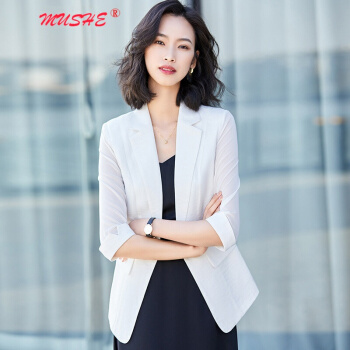 MUSHE原创轻奢 小西装短外套女2020夏季新款时尚韩版减龄显瘦气质优雅网纱拼接西服上衣外套 白色 M |